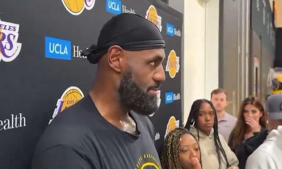 北京时间今日,在完成训练后,湖人队球星勒布朗-詹姆斯接受了媒体采访。